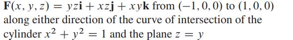 Beräkna linjeintegralen i givna vektorfältet längs en kurva och ett plan
