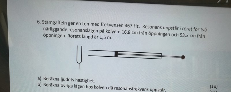 Mahiya99 skrev:Skillnaden mellan vadå? 16,8 och 53,3 eller skillnaden mellan de två hastigheterna jag fått ut tidigare ? Hur ska jag veta om jag räknar med grundton eller första övertonen?