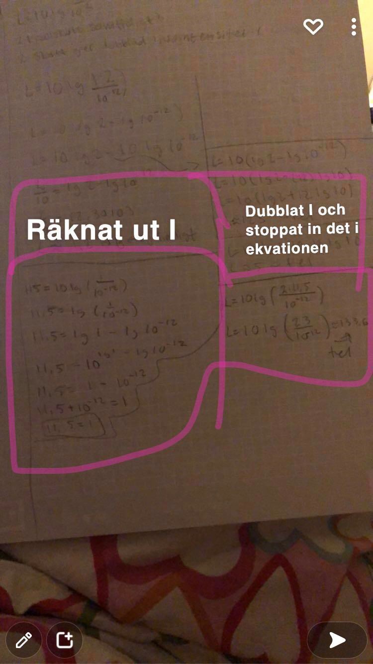 Med I kan du sedan räkna ut ljudnivån för dubbla intensiteten.