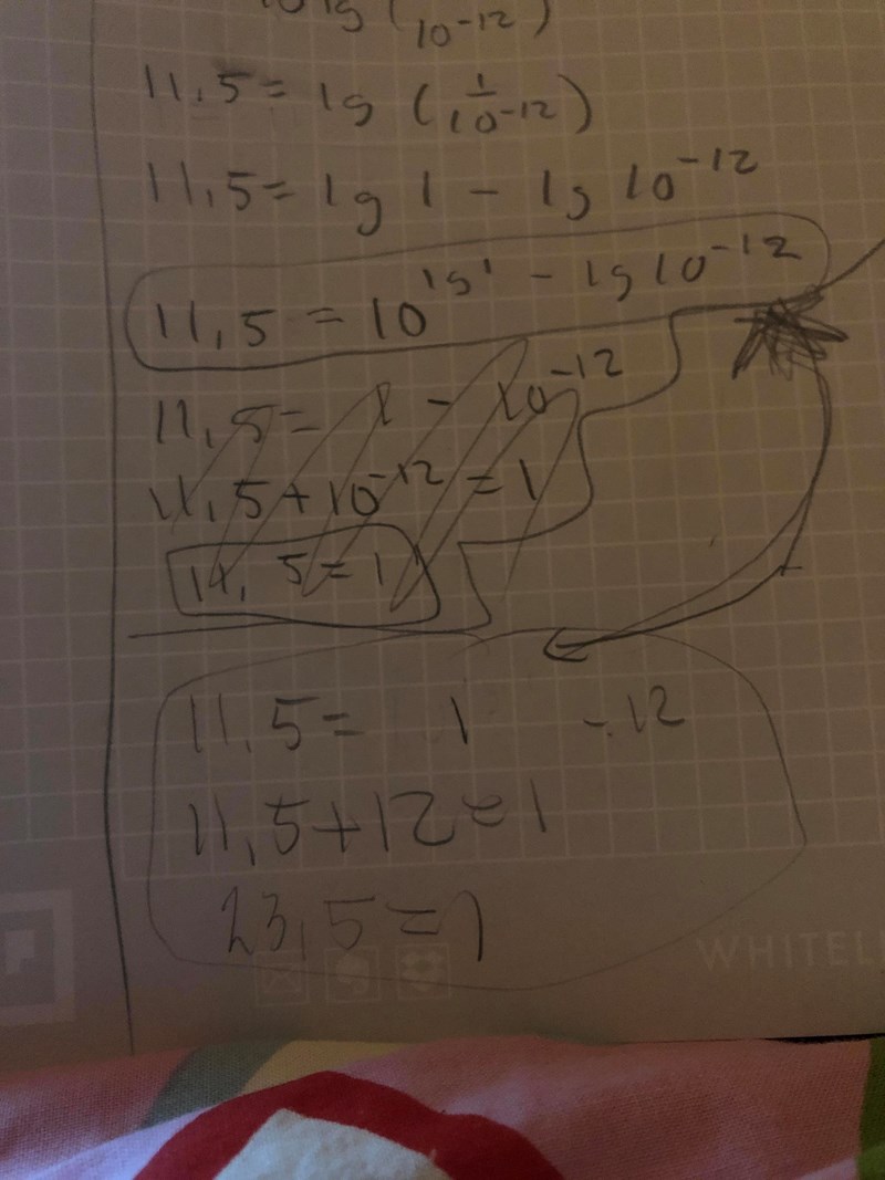 I är inte 11.5, du räknar fel vid logaritmerna, lg 10^-12 = -12.
