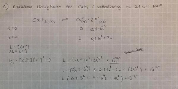 sofie_rehn skrev:Uppgiften lyder: Beräkna lösligheten för CaF2 i vattenlösning med 0,1mM NaF.