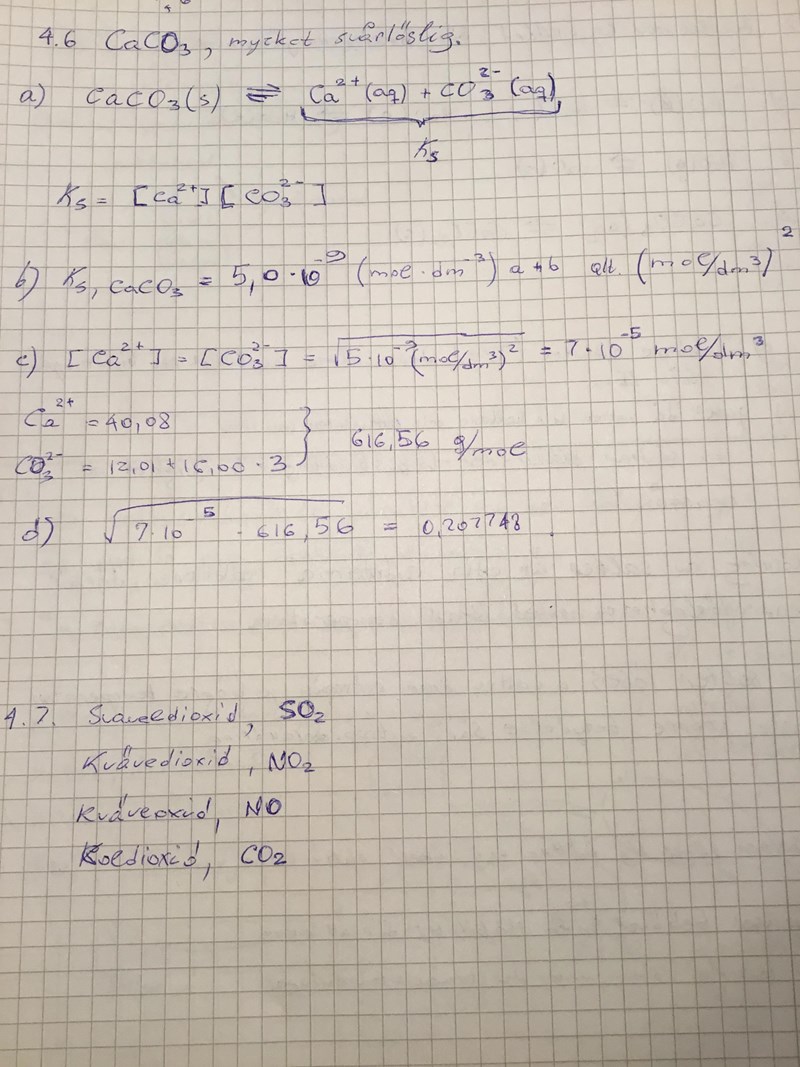 Avser 4.6 d) glömt hur man går vidare från Ks till g/dm3 .
