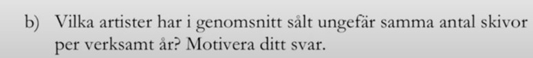 Om två artister ligger ungefär på samma stråle så har de i snitt sålt ungefär lika många skivor per verksamt år.