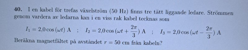 Beräkna magnetfältet på avståndet r=50 cm från kabeln