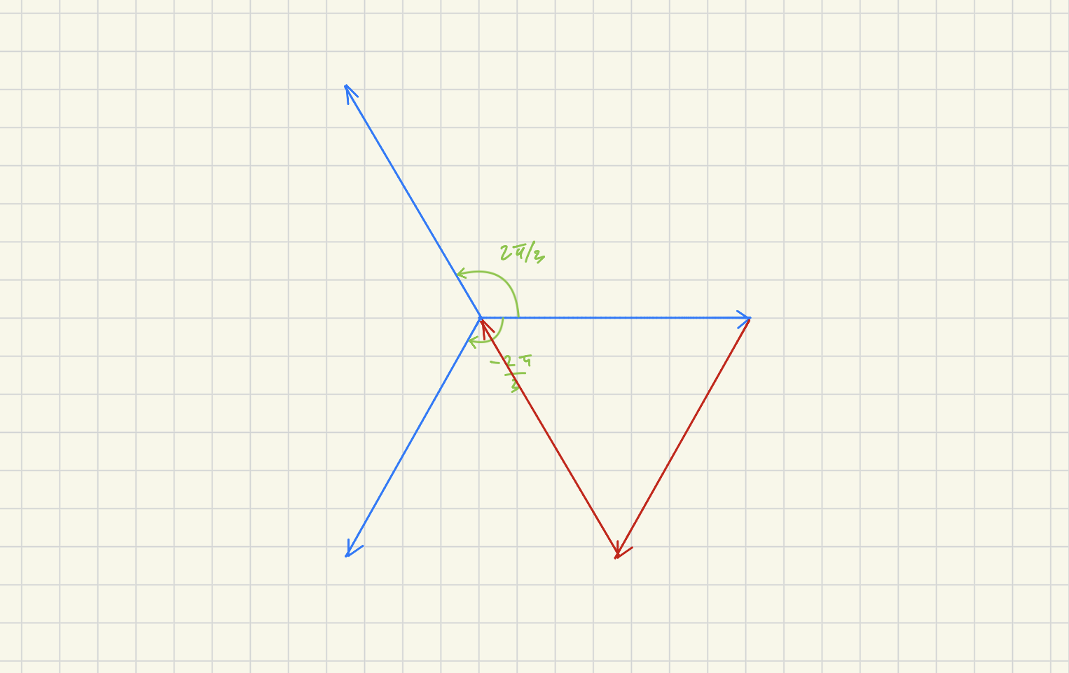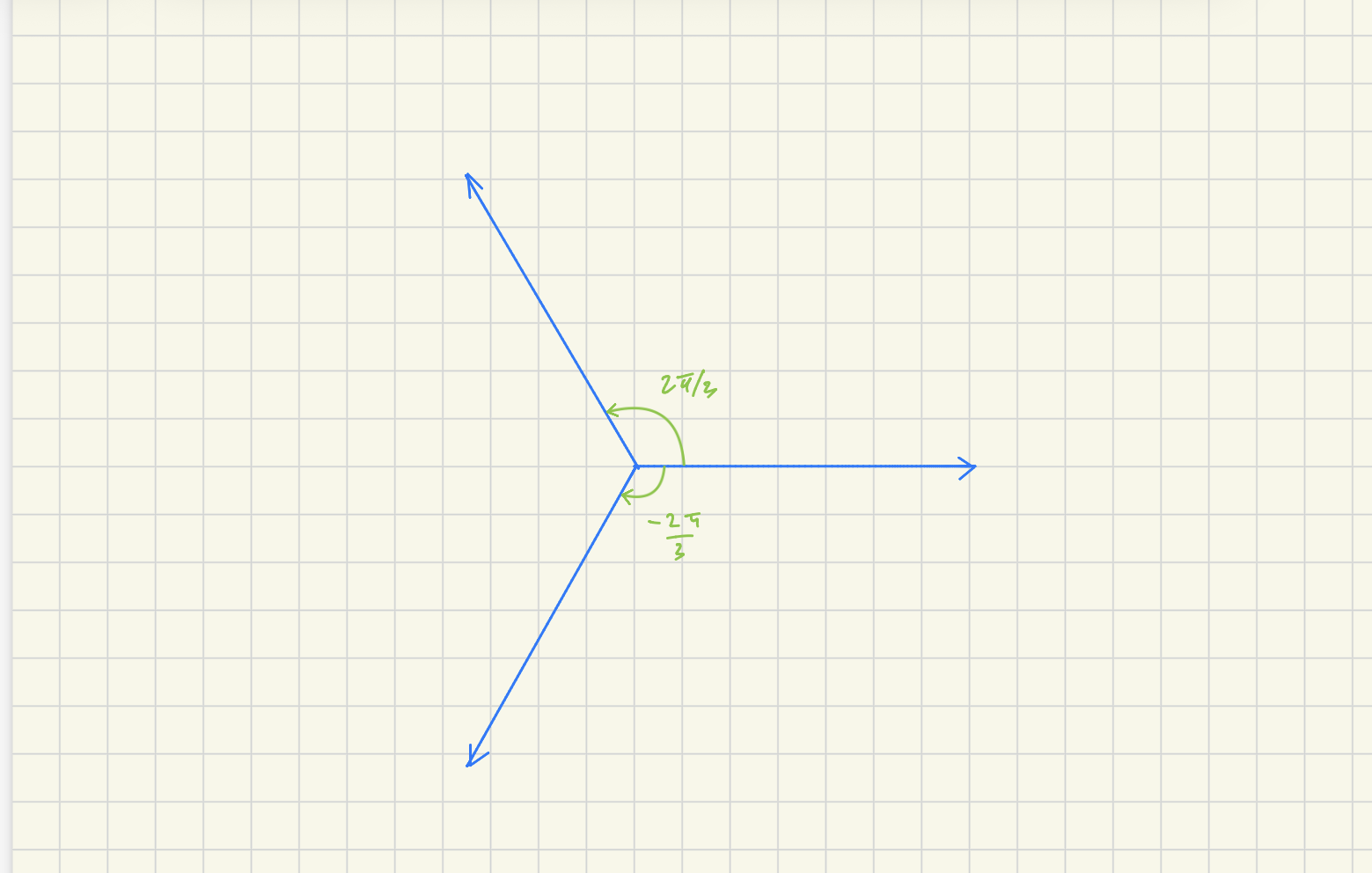 Hur vet man att man är ute efter en total ström här? Jag kan tänka mig att varje ström ser ut såhär i ett koordinatsystem med vinkarna 0, 2pi/3 och -2pi/3.