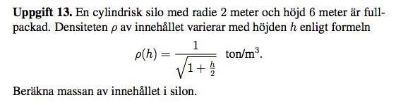 dr_lund skrev:Ett litet cylindriskt volymselement har volymen