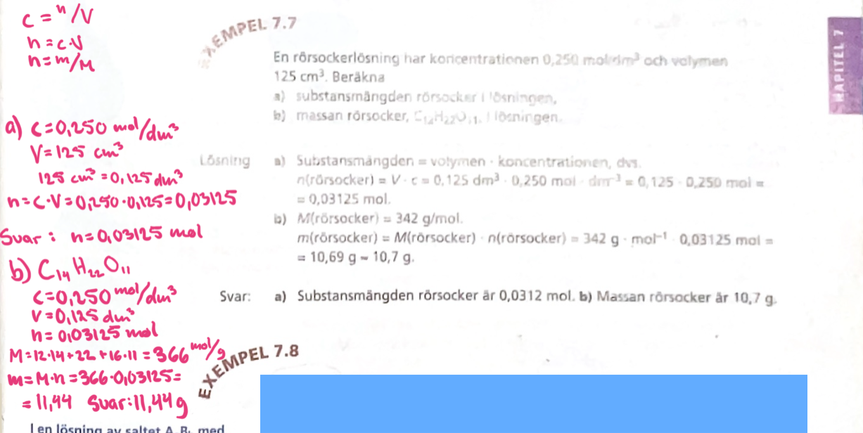Jag sitter och pluggar lite kemi, och fick fel på en uppgift, förstår inte riktigt var det blivit fel, för jag är ganska nära svaret, men ändå en bra bit ifrån det rätta svaret vilket få mig att tro att det inte handlar om slarv i avrundningen, utan snarare något annat fel i uträkningen, ser dock inte vad det är som blivit fel. Tacksam för om någon hade kunnat kolla över min lösning på b-uppgiften och kanske upptäcka felet jag inte ser.