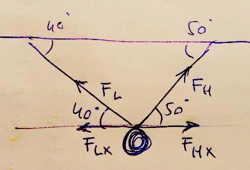 FLx = FHx ==> 35N * cos(40) = FH * cos(50) ===>