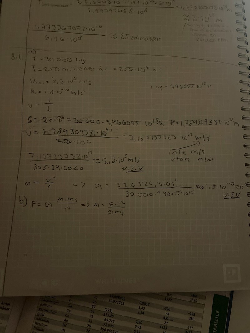 detta får man veta i uppgiften och jag kan visa min tidigare uträkning. Ska man använda 30 000 l.y. Som r? Och vad är i så fall F?