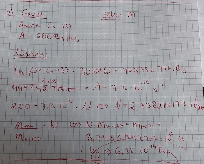 Men, du kan ju göra samma sak med aktiviteten du hade koll på i uppgift 2. Där räknade du ut massan givet 200 Bq, eller hur?