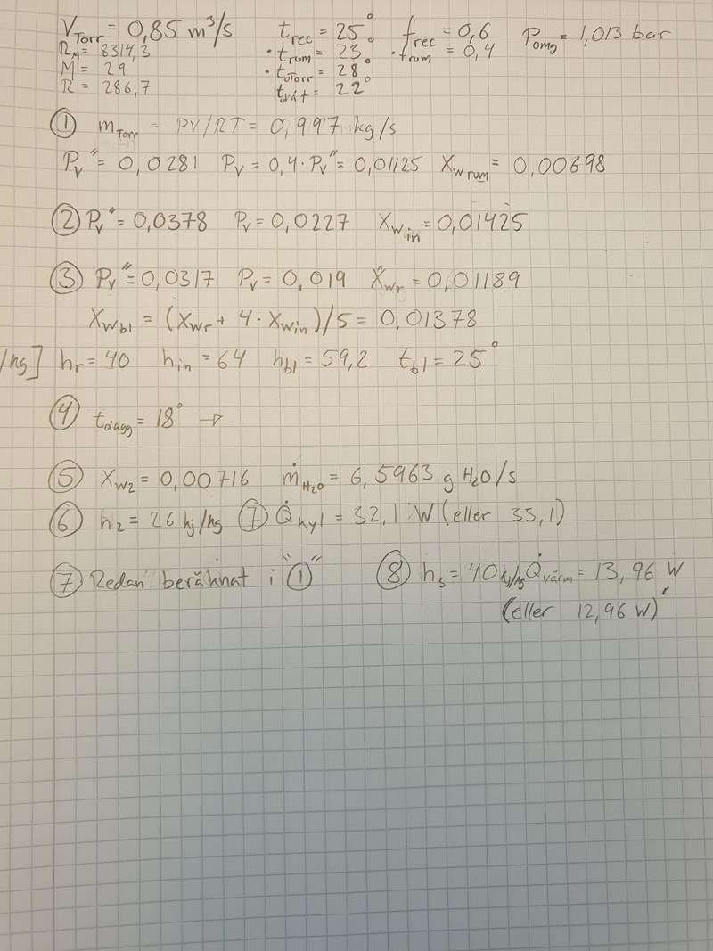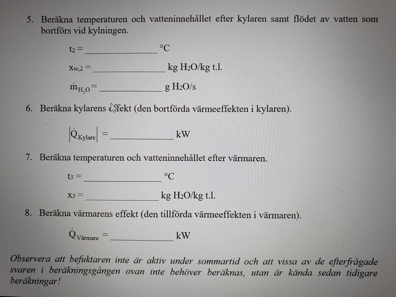 Beräkna massflödet av vatten som bortförs samt effekten av kylaren och värmaren, termodynamik, svår!