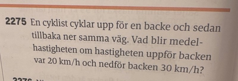 Jag trodde jag skulle behöva addera något och sedan dividera på 2 för att få medelhastigheten. Därför visste jag inte riktigt var jag skulle börja.