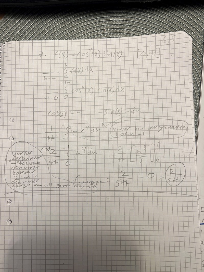 Först går x från 0 till pi, så då går u från 1 till -1.