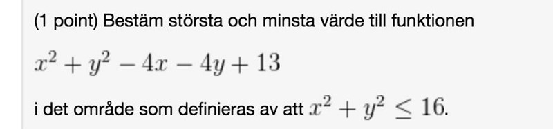 Man ser direkt att funktionens minsta värde är och att det antas i punkten som ligger inuti det tillåtna området.