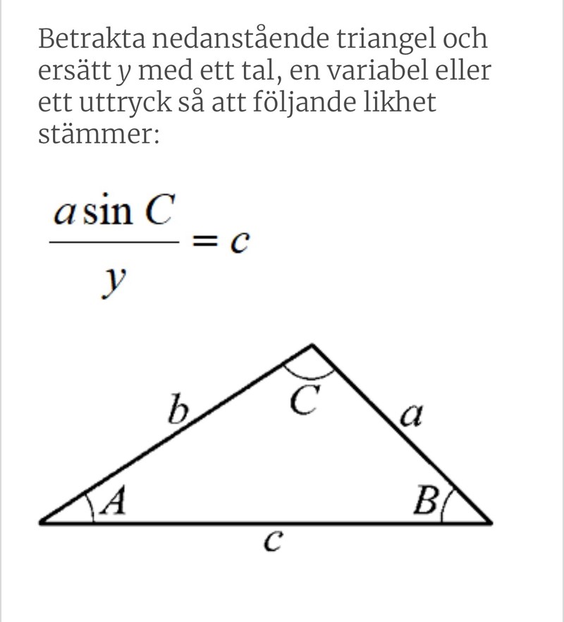 Skriv upp sinussatsen för trisngeln så fixar vi y sen: