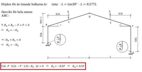 I det rödmarkerade ser vi en felaktig momentekvation där momentet från saknas (den har hävarmen 0,2L). Denna skulle alltså vara: