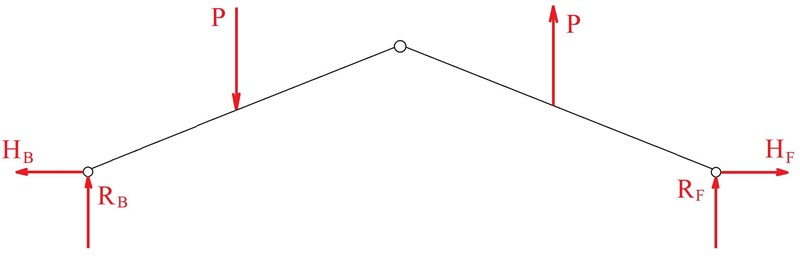 Examinatorn har tagit fram krafterna för lutande delarna utan att snitta
