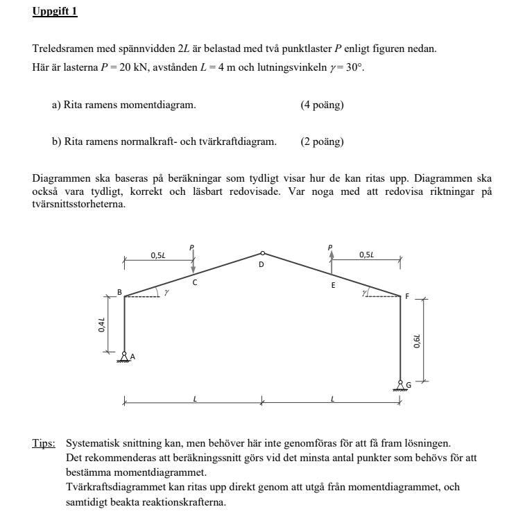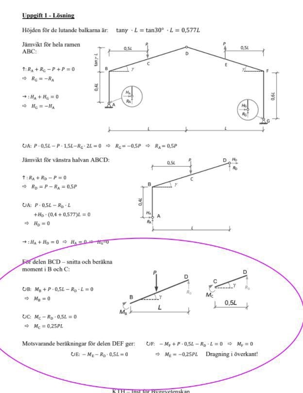 Hej! Jag har väldigt svårt att förstå hur examinatorn räknat fram värdena för ramverkets lutande delar. Bild på hela uppgiften samt lösningsförslaget för beräkningen av de lutande delarna har jag lagt till ifall någon förstår eller har en bättre metod. Har kollat tidigare tentor, föreläsningar, övningsuppgifter men även frågat andra kursare på vår "skol" facebookgrupp och fick svaret att "alla undrar samma sak". Så detta verkar vara ett gemensamt problem och det är inte bara jag som tycker såhär