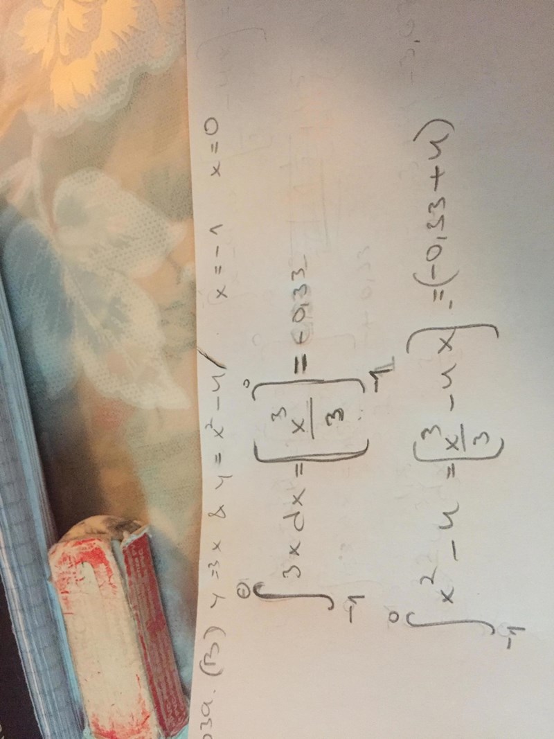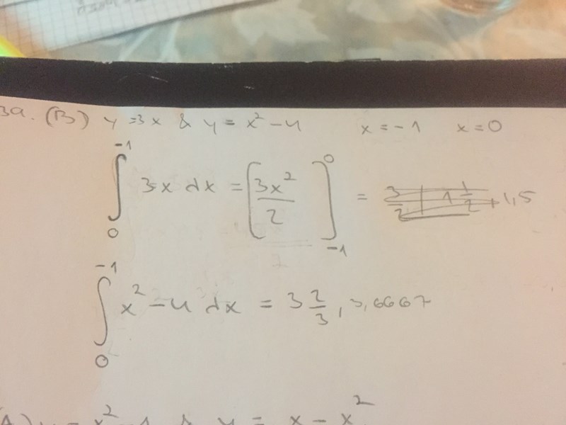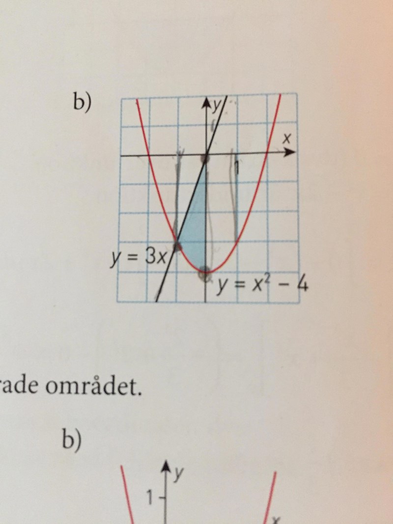 Har även skrivit om linjen och Grafen, till, y=3x^2 samt y=x^3/3-4x, därefter satt in -1 och 0 i både Grafen och linjen. Får linjen till 1,5 samt Grafen till 3,67. Vilket inte överensstämmer med facit... var gör jag fel och hur ska jag göra?