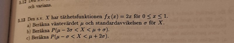 Beräkna P(u-2o<X<u+o)
