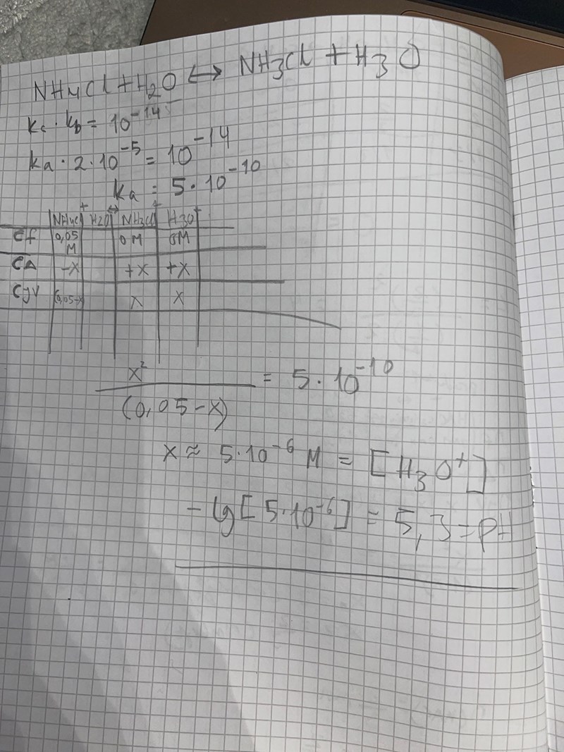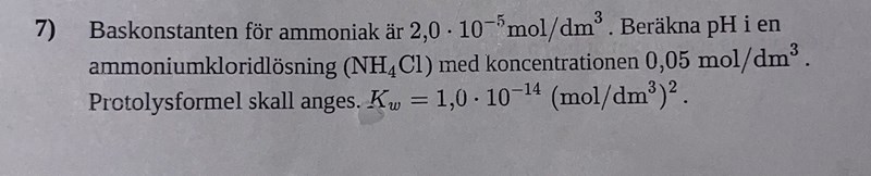 Beräkna PH värdet för NH4Cl