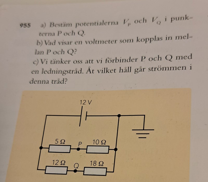 såhär långt kom jag. Men jag är lite fast på hur jag ska hitta potentialerna i P respektive Q.