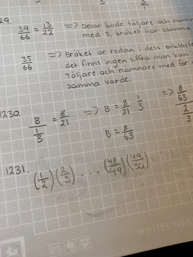 Smutstvätt skrev:Hur har du börjat? Börja med att förenkla bråken inuti parenteserna. Hur ser produkten ut efter det? :)