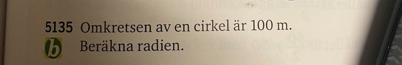 Nu kan du sätta in 100 för omkretsen och räkna ut r