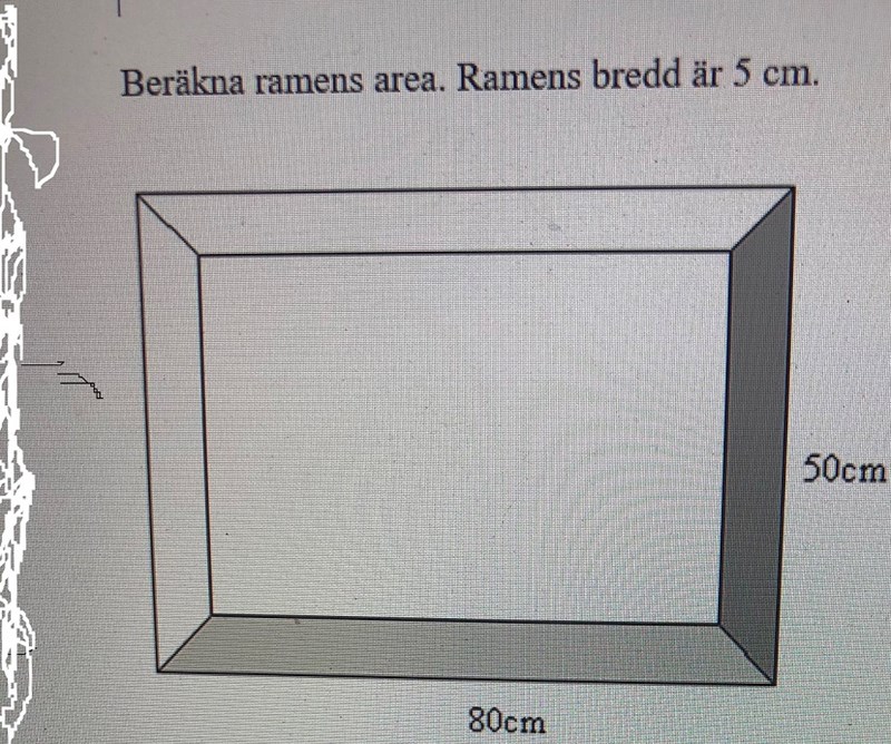 Beräkna ramens area som är följande L80 B50. (Ramens bredd är 5 cm.?)