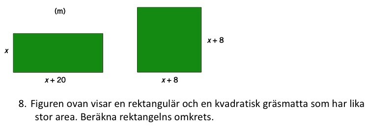 Hur stor är omkretsen för en kvadrat vars sida är x+8?