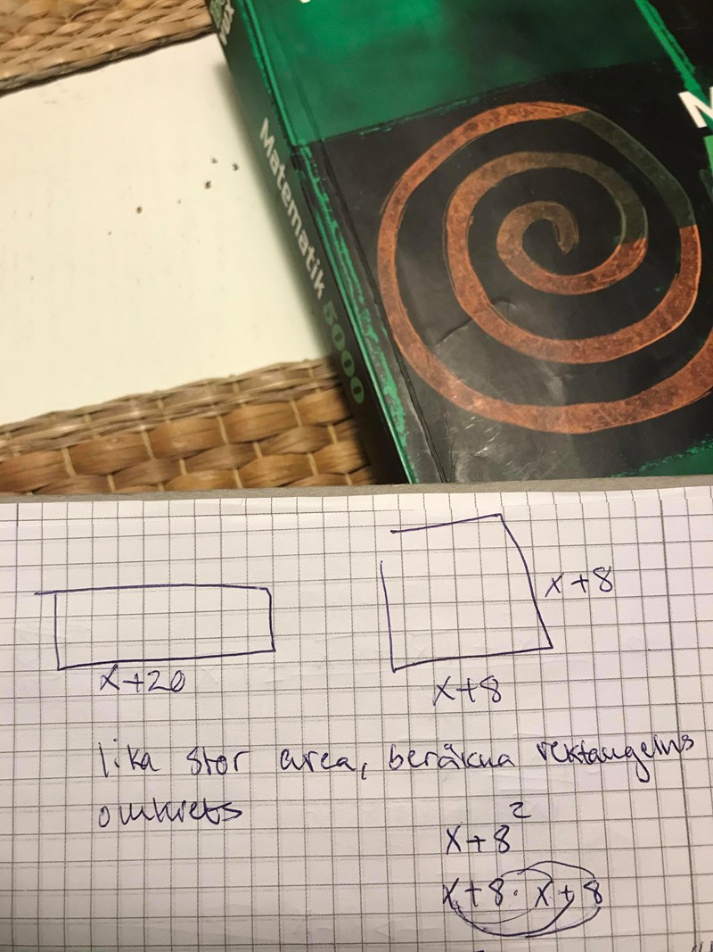 Rektangeln blir  x+20 gånger 2 men vad blir kortsidorna