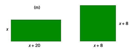 "Figuren ovan visar en rektangulär och en kvadratisk gräsmatta som har lika stor area.