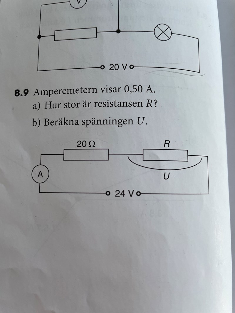 Ställde upp de värden man får i uppgiften och satte in i ohms lag, där jag löste ut R. Alltså: