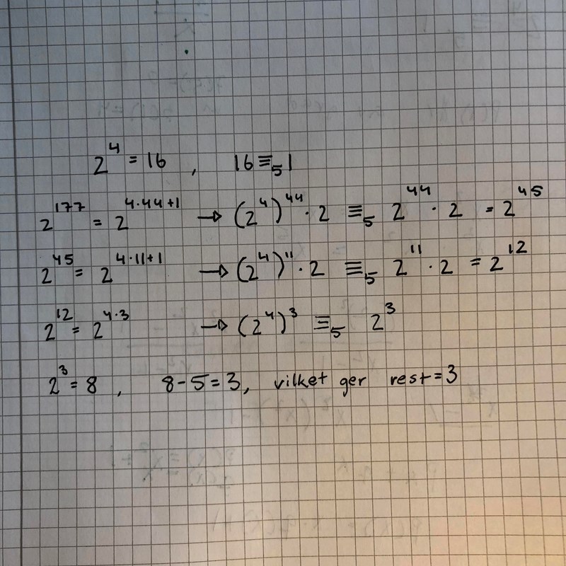 Jahaaa . nu fattar jag! blev lite förvirrad där ett tag, första gången jag räkna med modulo hehe! Så jag ska tänk som jag skrivit i min bifogade bild då?