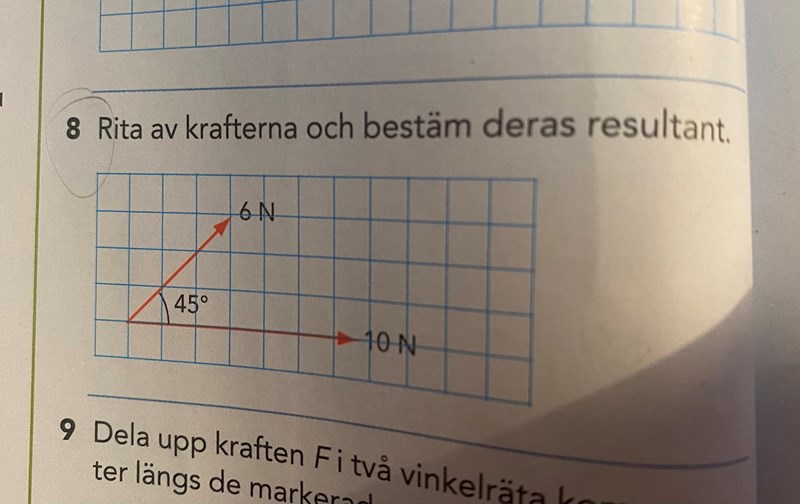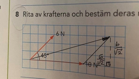 På det sättet du räknar så skulle längden av 6 N-pilen vara 6•cos(45°)+6•sin(45°), vilket är ungefär lika med 8,5 N.