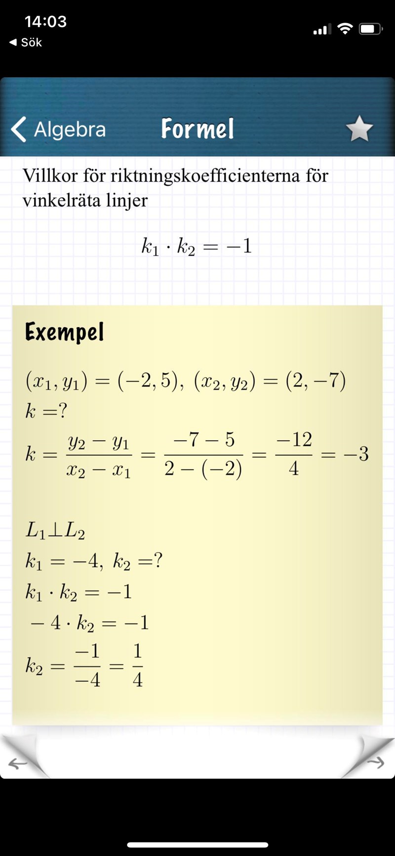 Beräkna riktningskoefficienten för en linje som är vinkelrät mot linjen y = 4x - 2