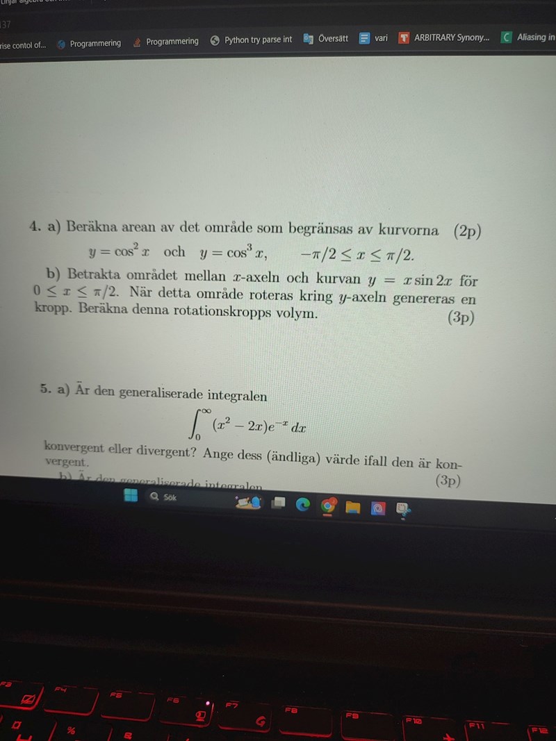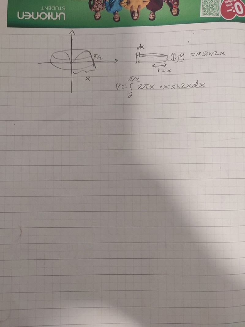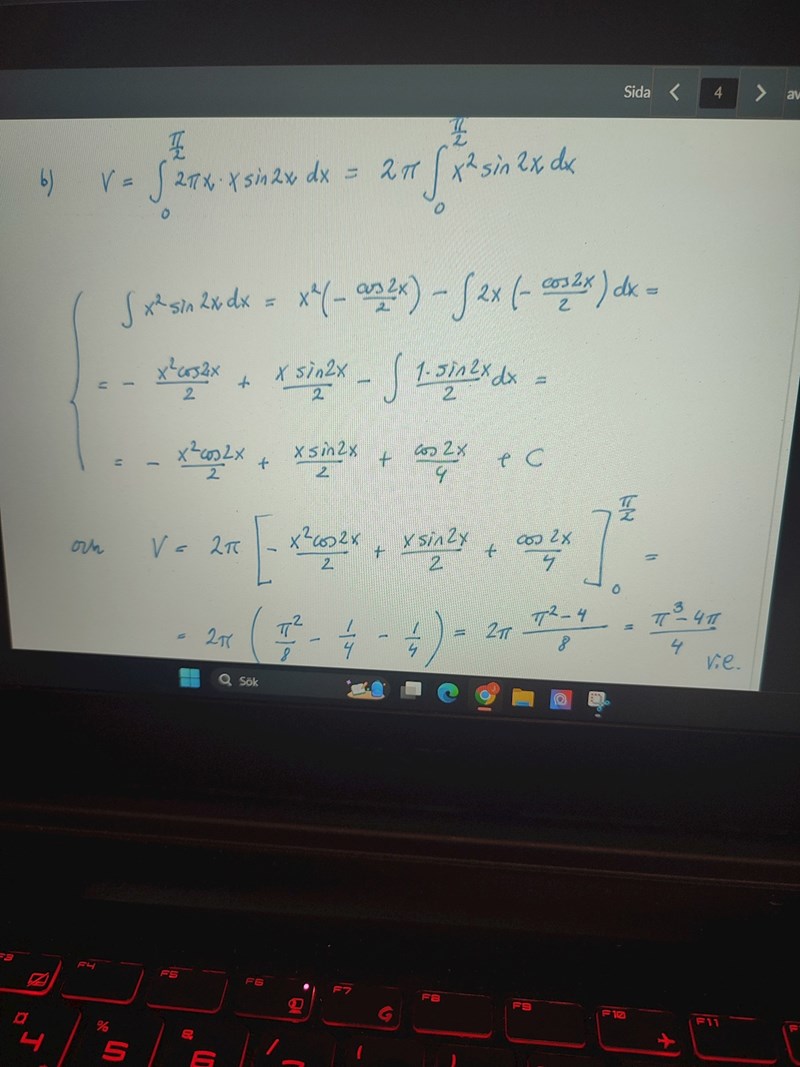 Hej! Jag försöker lösa uppgift b) men förstår inte vad jag gör fel?:( De har använt skalmetoden men visst ska man alltid kunna välja mellan skiv-eller skalmetoden? Så hör ser uppgiften ut: