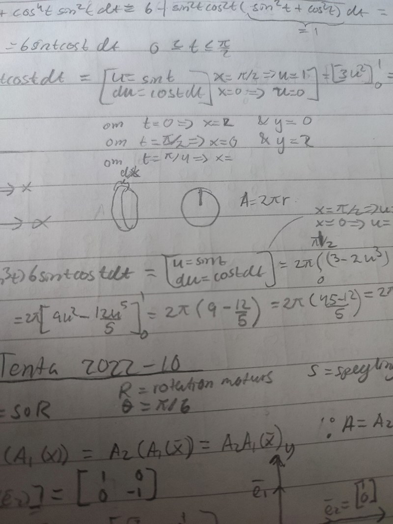 Hej! Jag försöker lösa den här uppgiften från en gammal tenta men förstår inte i 6b) hur de får fram att radien till cirkeln är 3-2sin^3t?