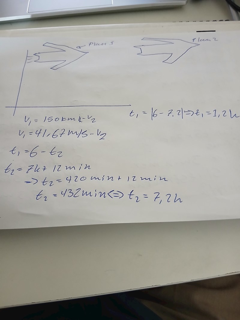 Ett exempel, om du vill: ena flygplanet håller 600 km/h, det andra 750 km/h.