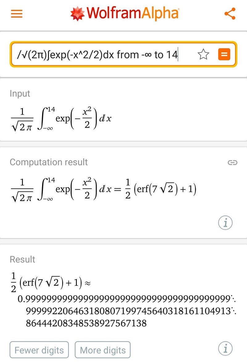 Sannolikheten för att något ligger 14 standardavvikelser från väntevärdet är i alla praktiska sammanhang 0.