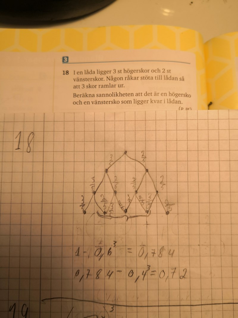 Beräkna sannolikheten att det är en högersko och en vänstersko som ligger kvar i lådan.