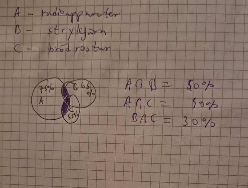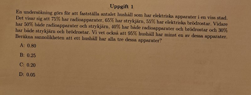 Beräkna sannolikheten att ett hushåll har alla 3 dessa apparater?
