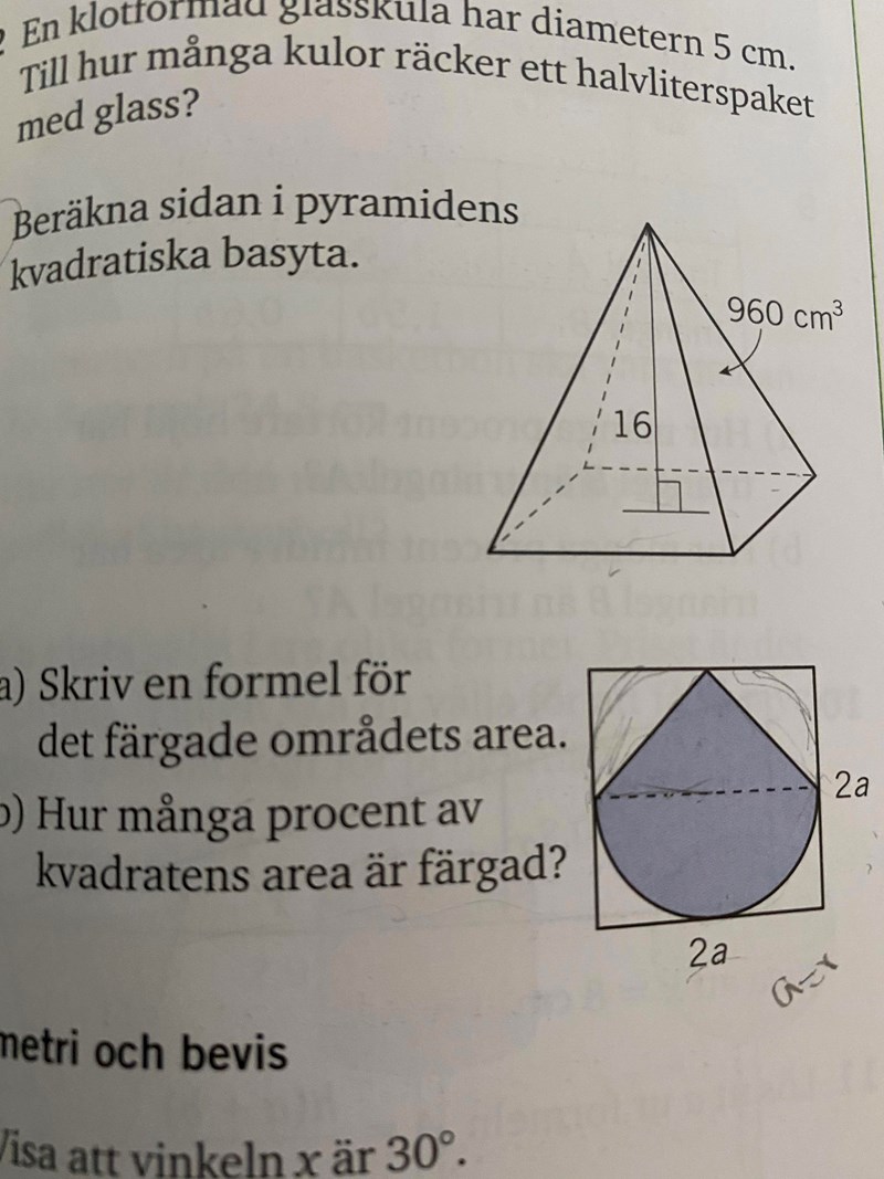 Beräkna sidan i pyramidens kvadratiska basyta.