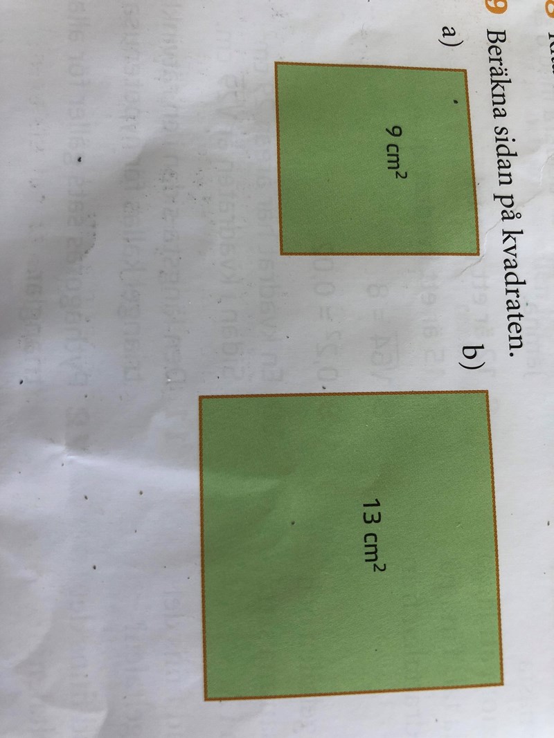 Alla sidor är lika långa i en kvadrat. Det betyder att när dom har räknat ut arean så har dom tagit ett värde multiplicerat med samma värde och fått fram . Hur tar man reda på vad det värdet kan ha varit?