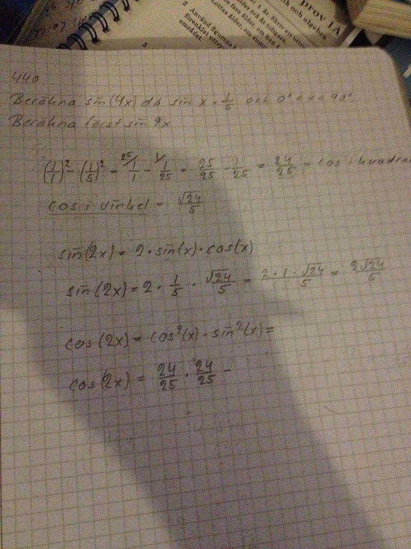 Jaha, då behöver vi ta reda på sin(2x) och cos(2x).