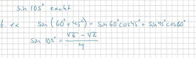 ska man inte ta sin60°+sin45°=sin105°? jag förstår inte varför man tar sin*cos sen förstår jag inte vart dom fin rot6-rot2/4 ifrån?
