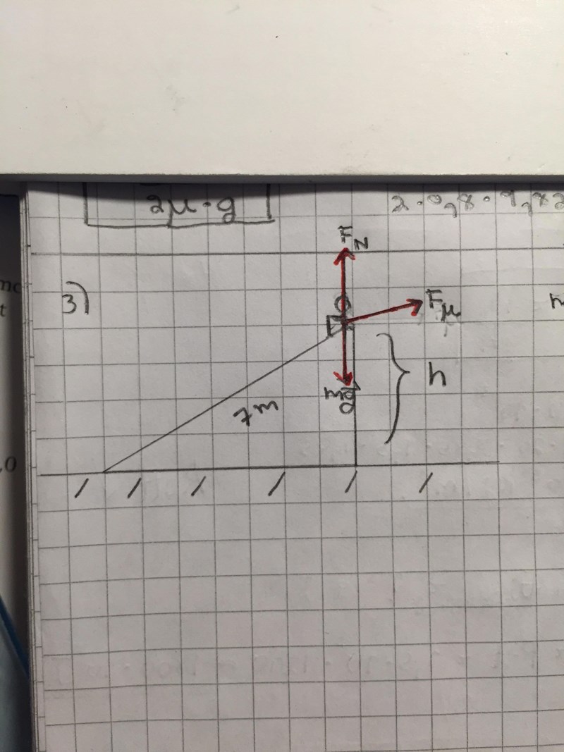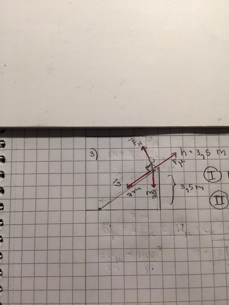 Nu pekar normalkraften åt helt fel håll. Normalkraften skall vara vinkelrät mot backen, ni pekar den rakt uppåt. Komposantuppdela mg.