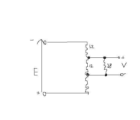 Låt säga att E är 12 V. Efter en resistans, återgår spänningen till 12 V då?
