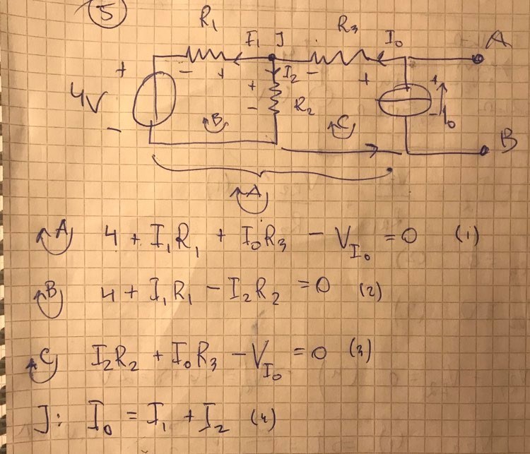 Du har skrivit VI0 men det är bättre att skriva VAB. VAB ska inte ses som en spänning som strömkällan ger, utan en spänning som ett resultat av hela kretsen. Titta på figuren igen som illustrerar hur en (akademisk) strömkälla beter sig :