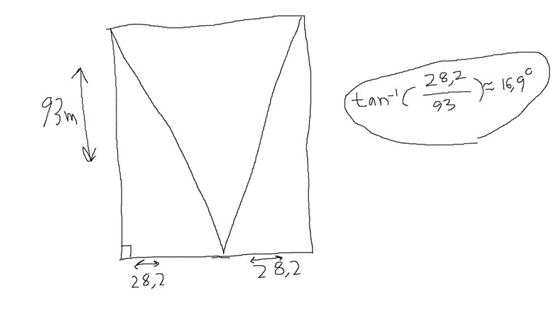 Vad ska jag säga? Facit förklarar att: "16,9 grader. Ledtråd: tänk dig en rätvinklig triangel."